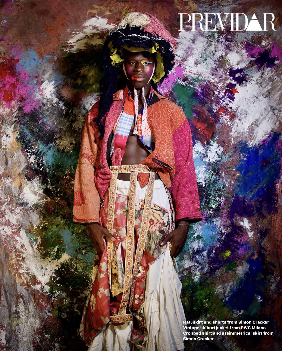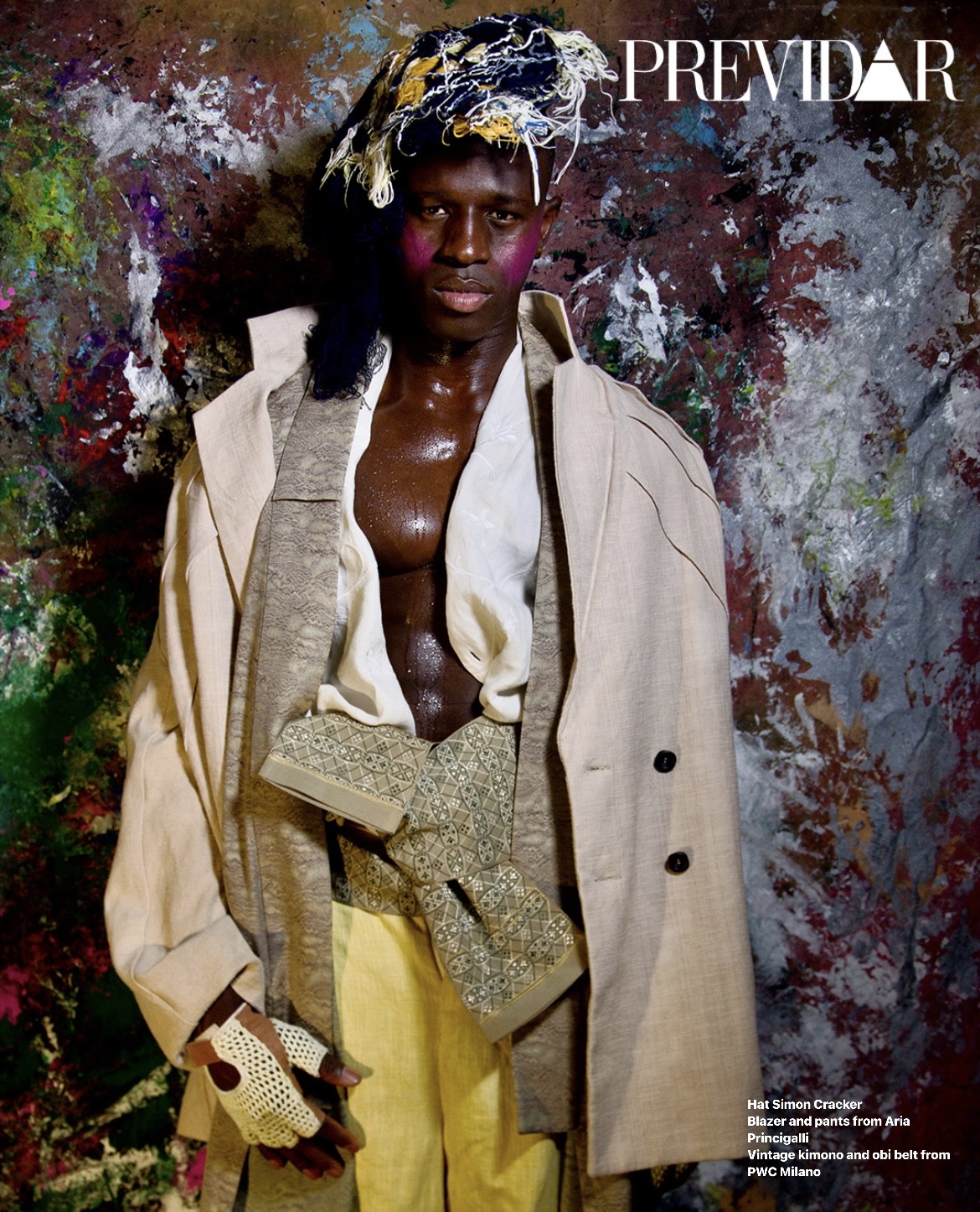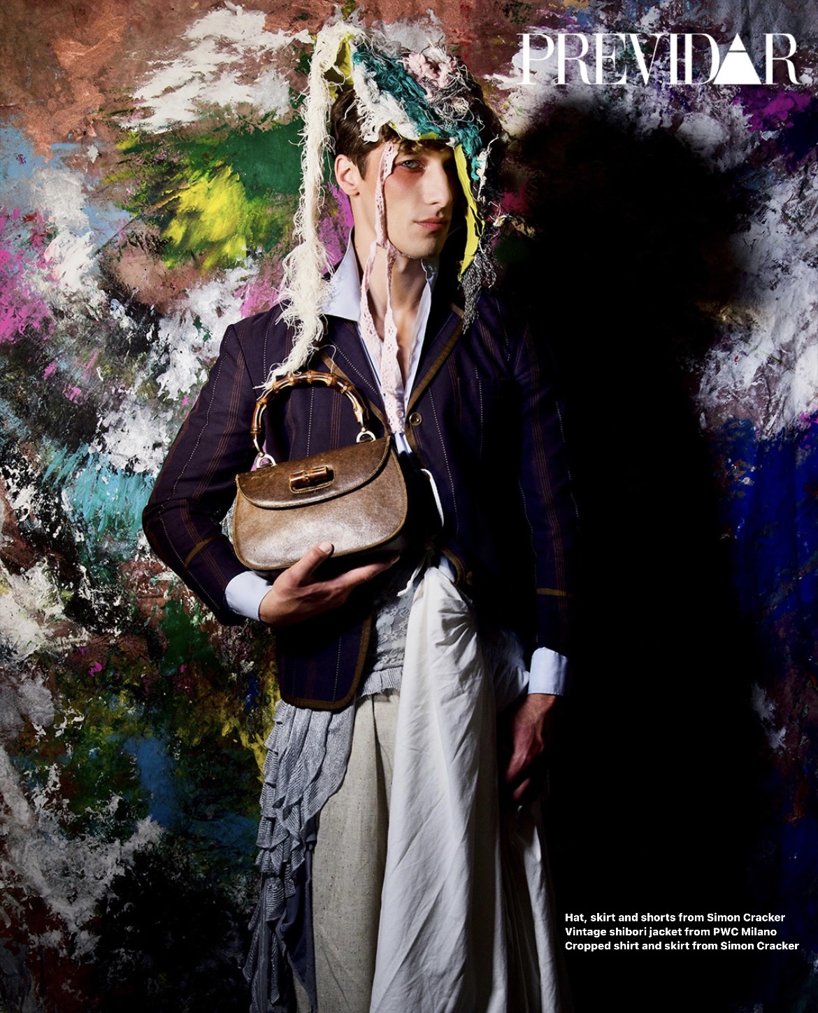 | Photo Credit: Hat Simon Cracker (@simoncracker) courtesy of PWC Milano (@pwcmilano)Blazer and pants Aria Princigalli (@t.hot.x) courtesy of PWC Milano (@pwcmilano)Vintage kimono and obi belt courtesy of PWC Milano (@pwcmilano)Shirt Kenzo Homme stylist’s ownSimon Cracker (@simoncracker) sandals courtesy of PWC Milano (@pwcmilano)Vintage gloves stylist ownVintage clogs stylist own |