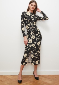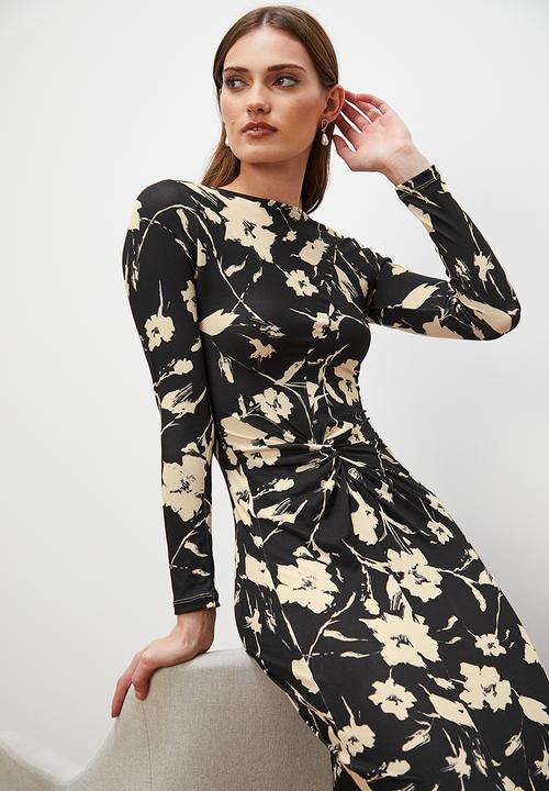 Knot front midi dress with slit-floral