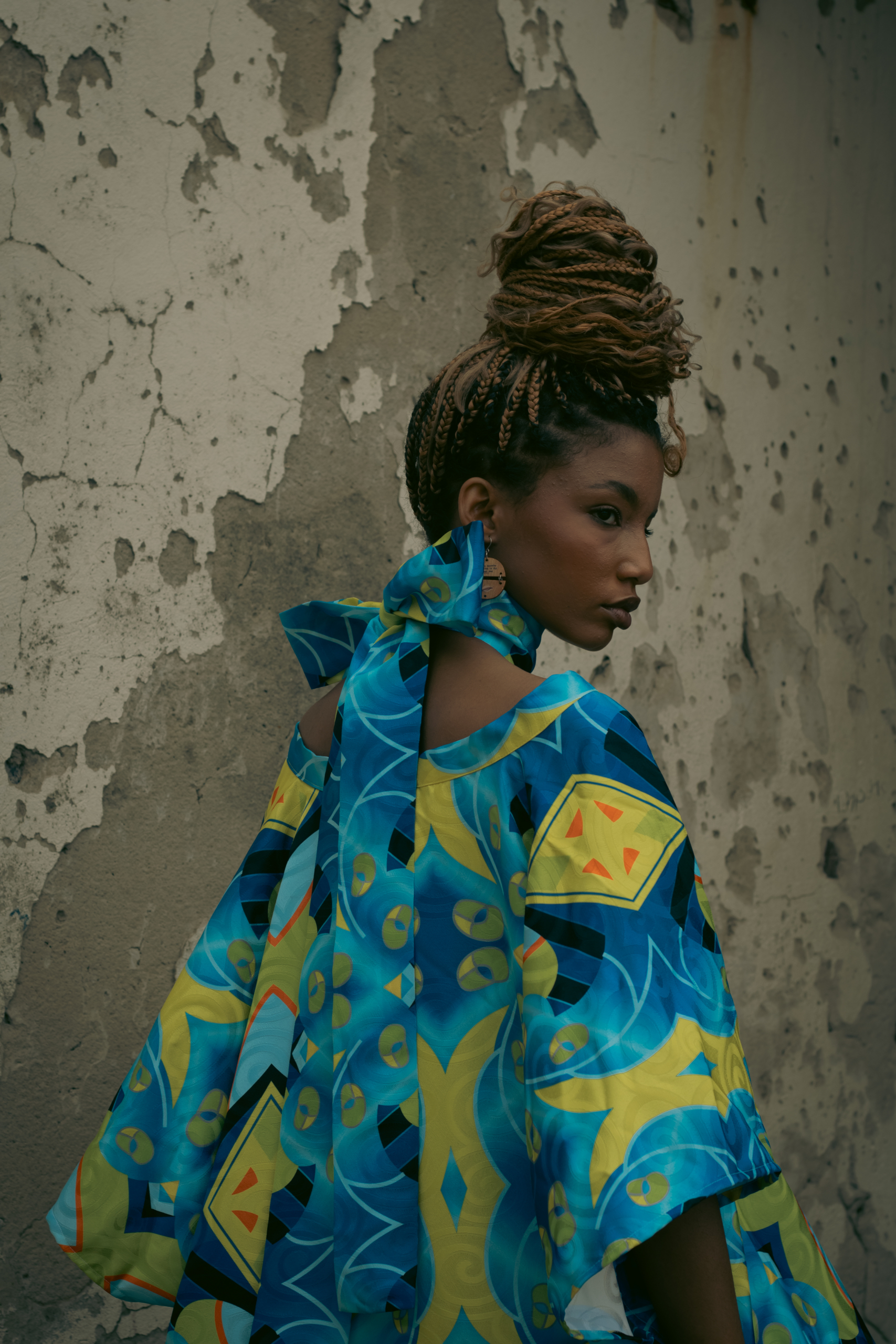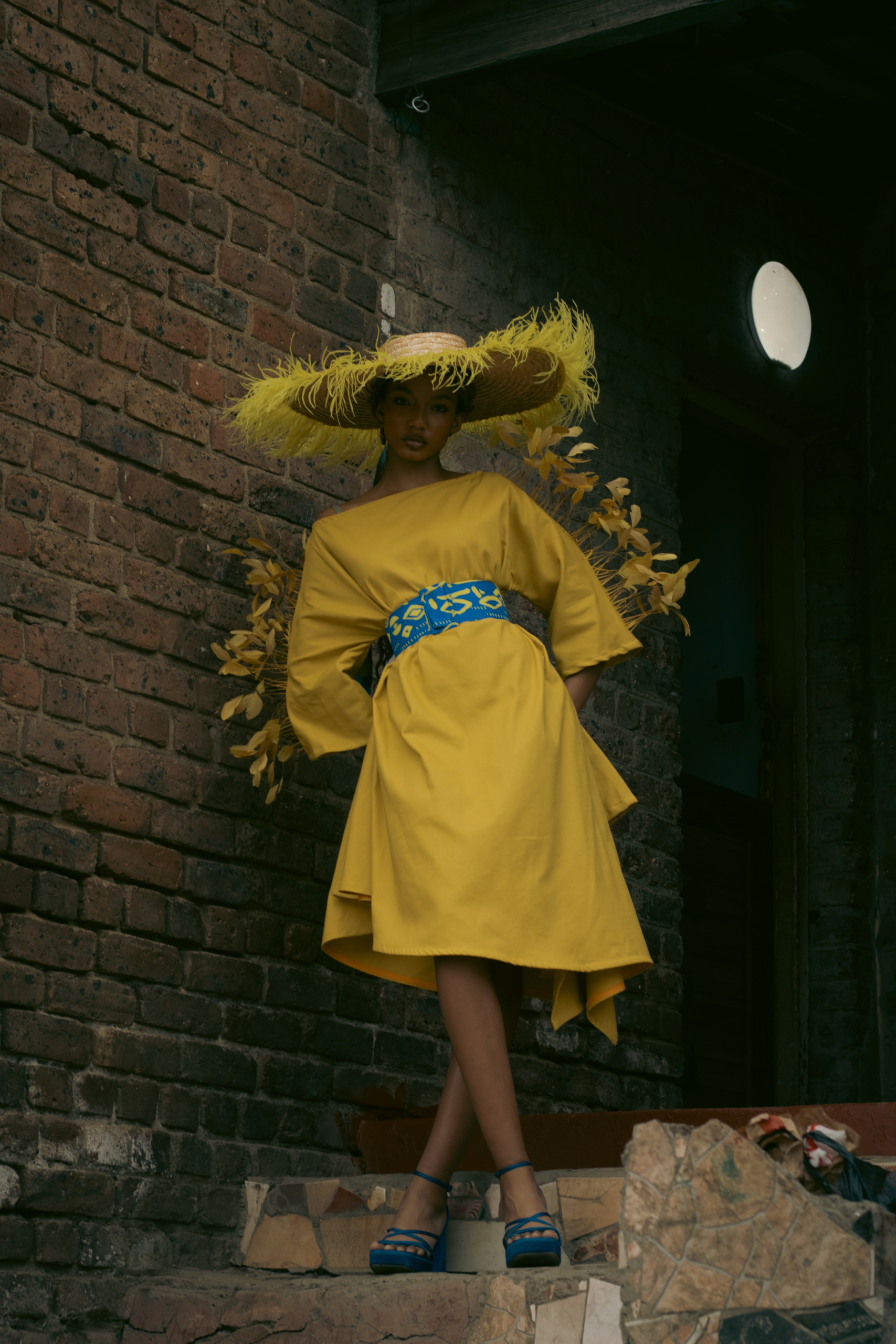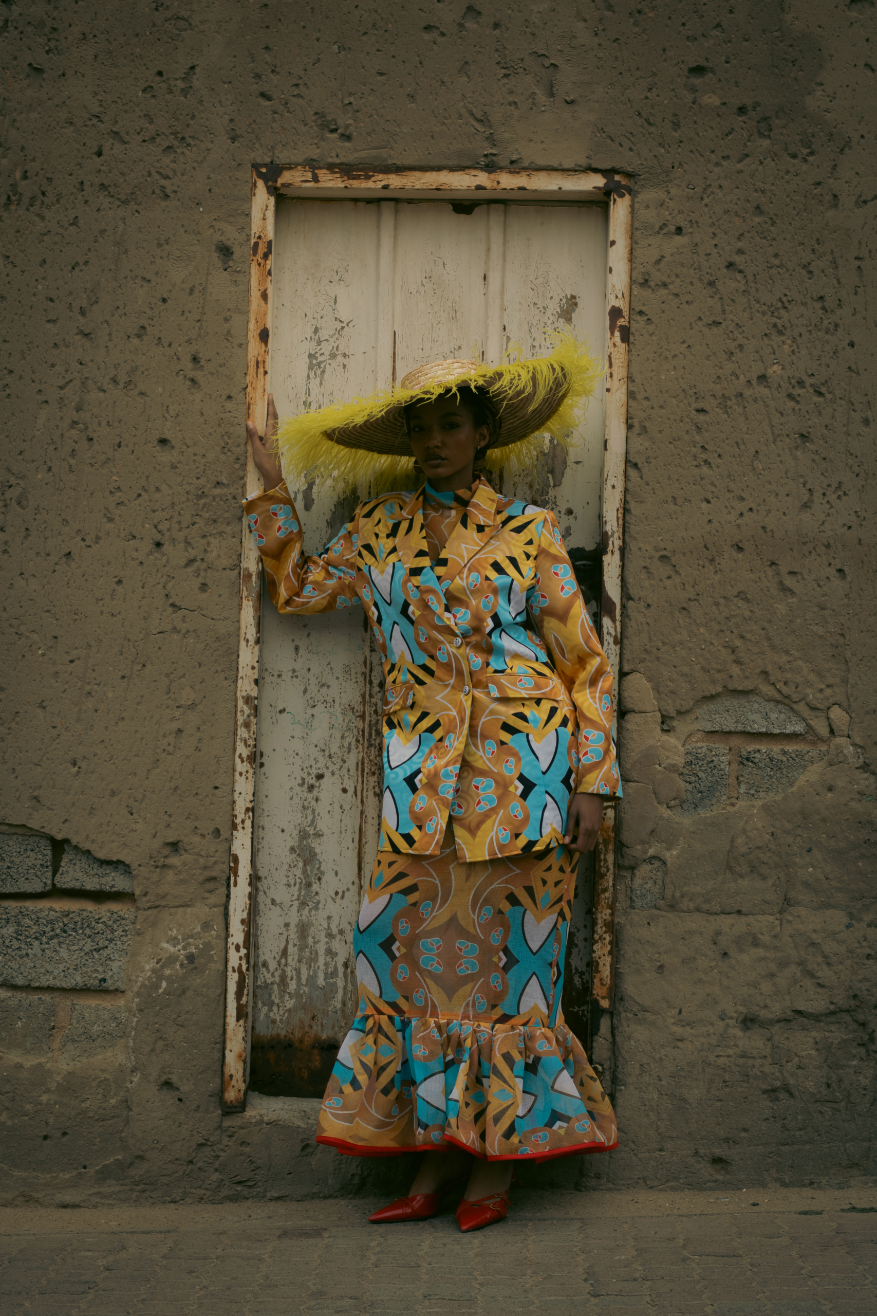 • Details that honour township ingenuity—pleats, wraps, headpieces—while presenting them in the language of high fashion.