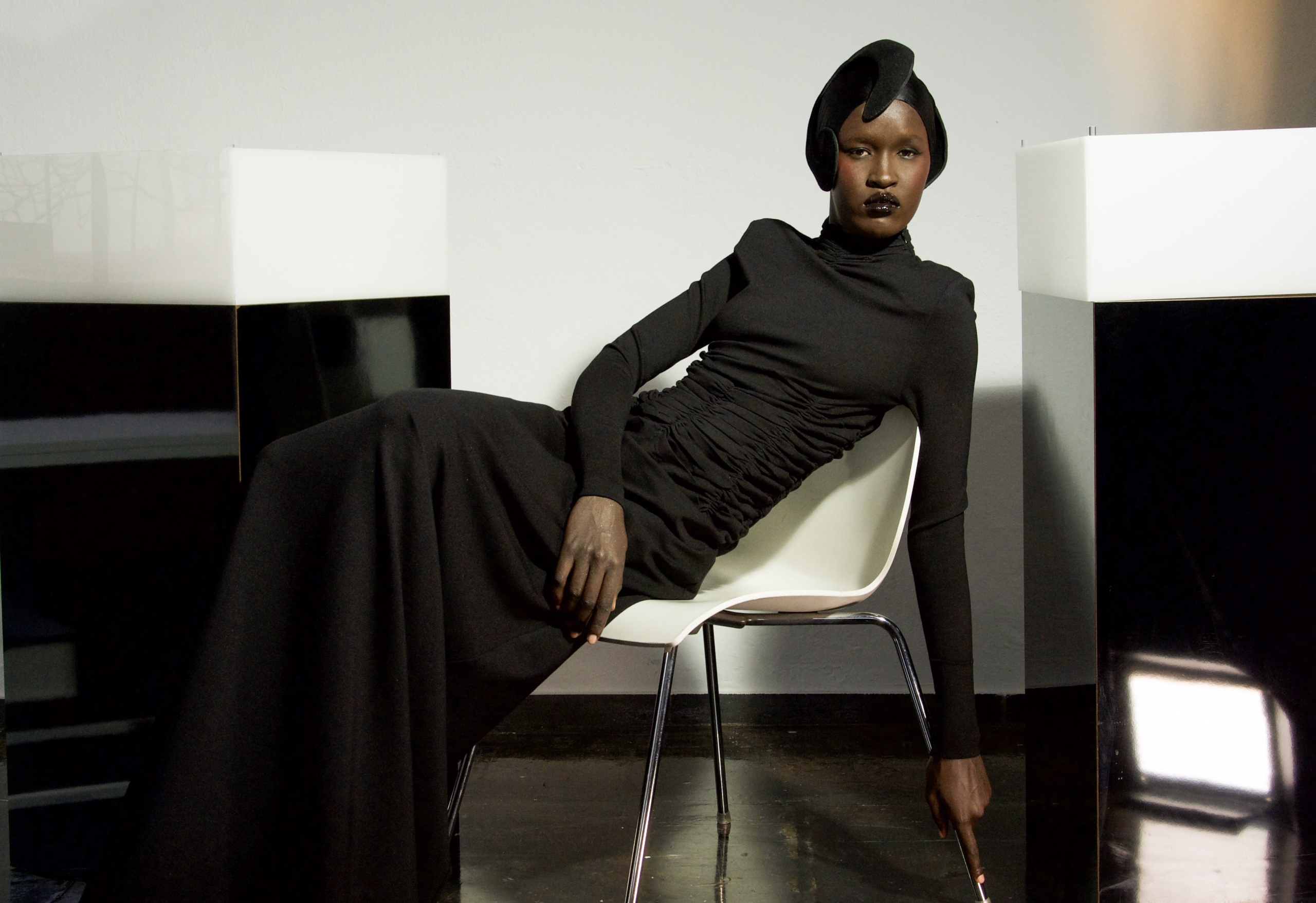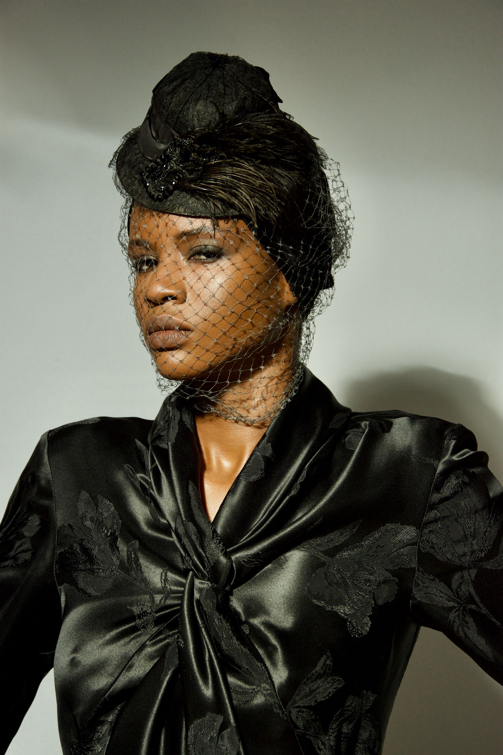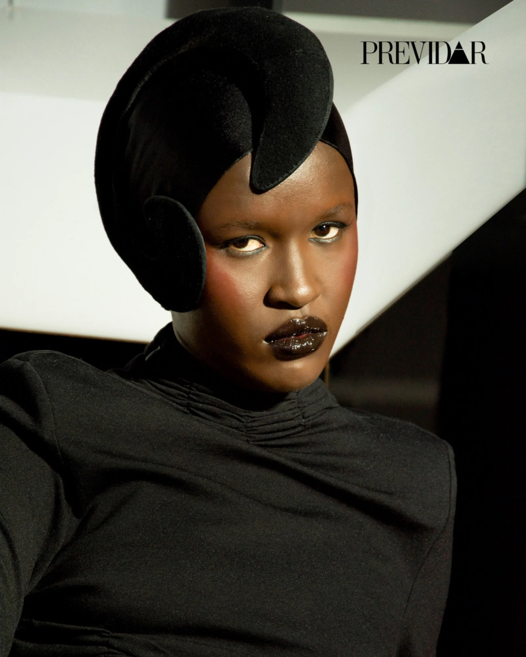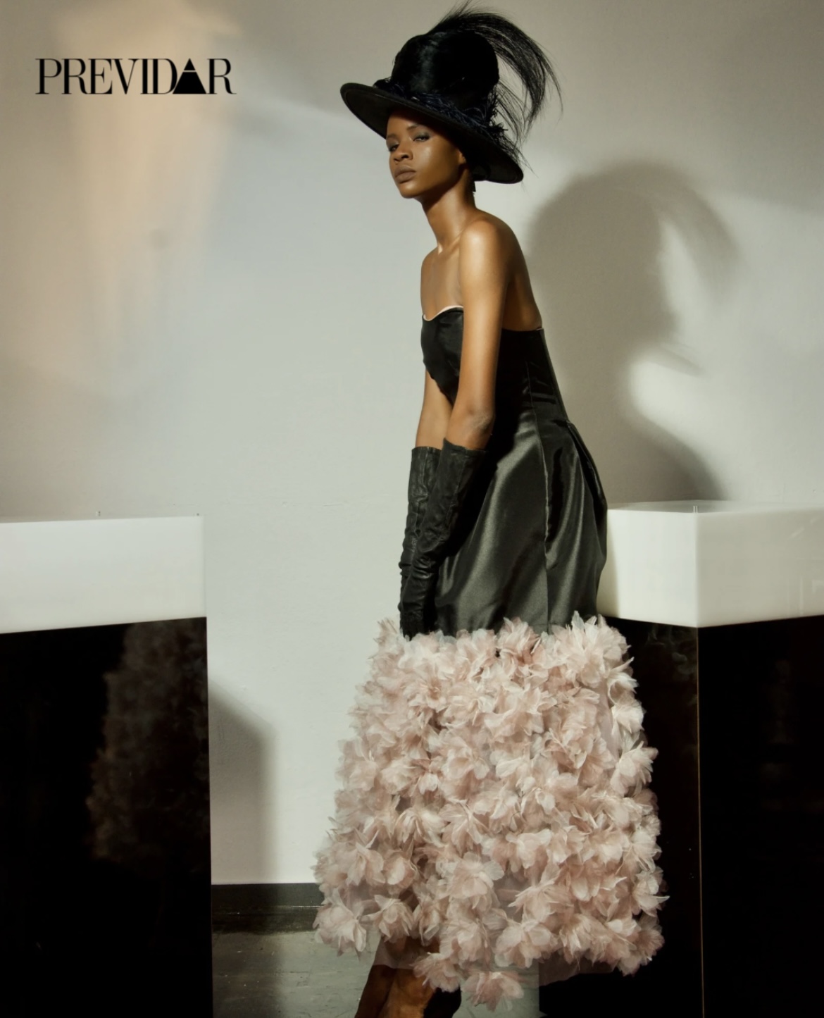 And the narrative here is unmistakable: a celebration of depth, power, and the haunting beauty of black. The clothes do not merely drape the models — they speak through them. Accessories, textures, and sculptural silhouettes become symbols of authority and grace. Leonardo’s touch ensures that each detail, from the curve of a hat brim to the glint of a pearl necklace, adds not just style but storytelling.