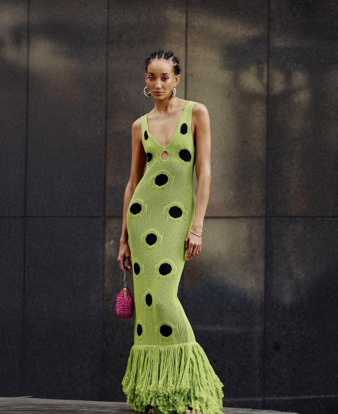 At the heart of Hanifa’s design philosophy is a deep respect for form. Sculptural silhouettes trace curves with intention, stretching and contouring in ways that feel both sensual and controlled. Knit dresses skim the body without restriction, while fluid lines and thoughtful construction ensure movement is never compromised. This is fashion that listens to the wearer, responding to how women move through space rather than imposing rigid ideals upon them.