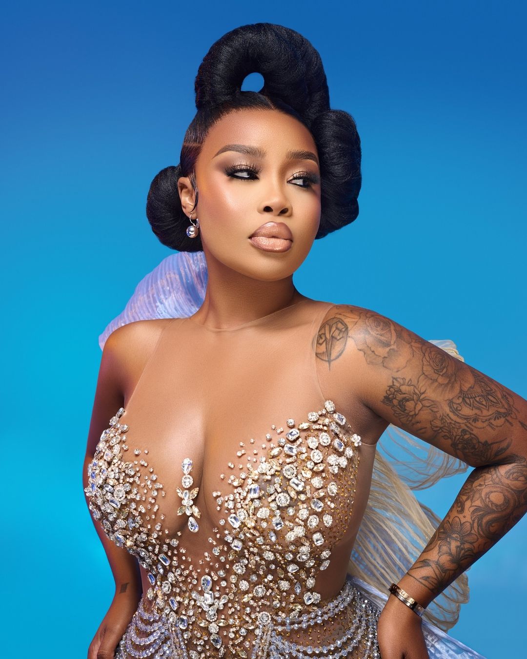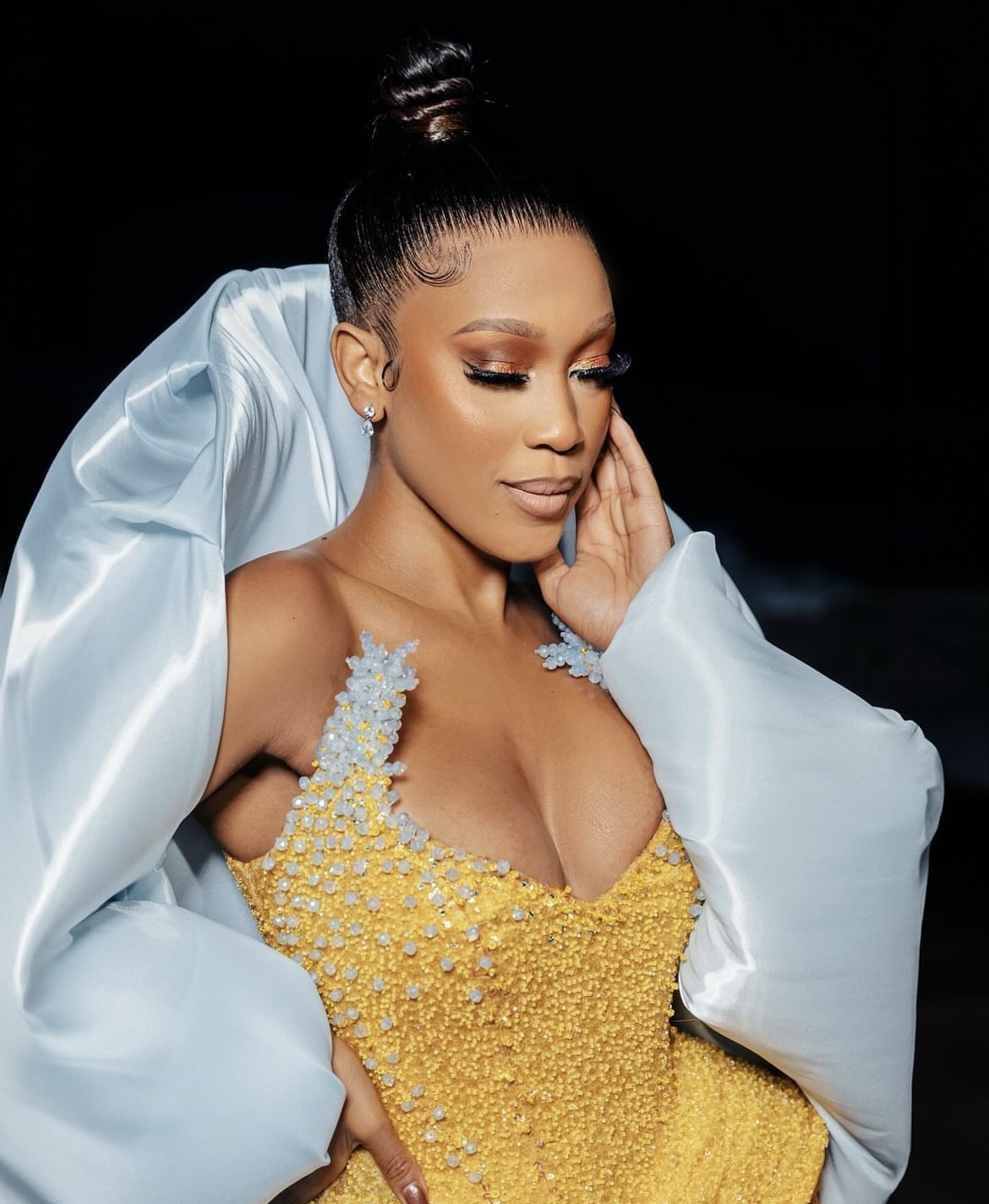 She is beauty, she is grace. And might we add, she is glowing, Thando Thabethe’s monochromatic peach makeup was angelic.