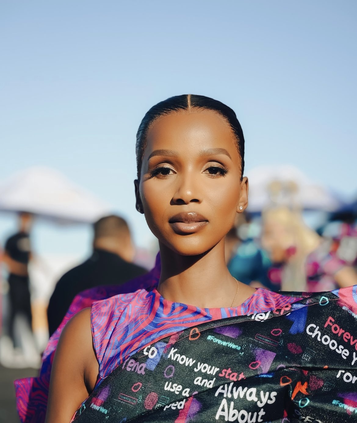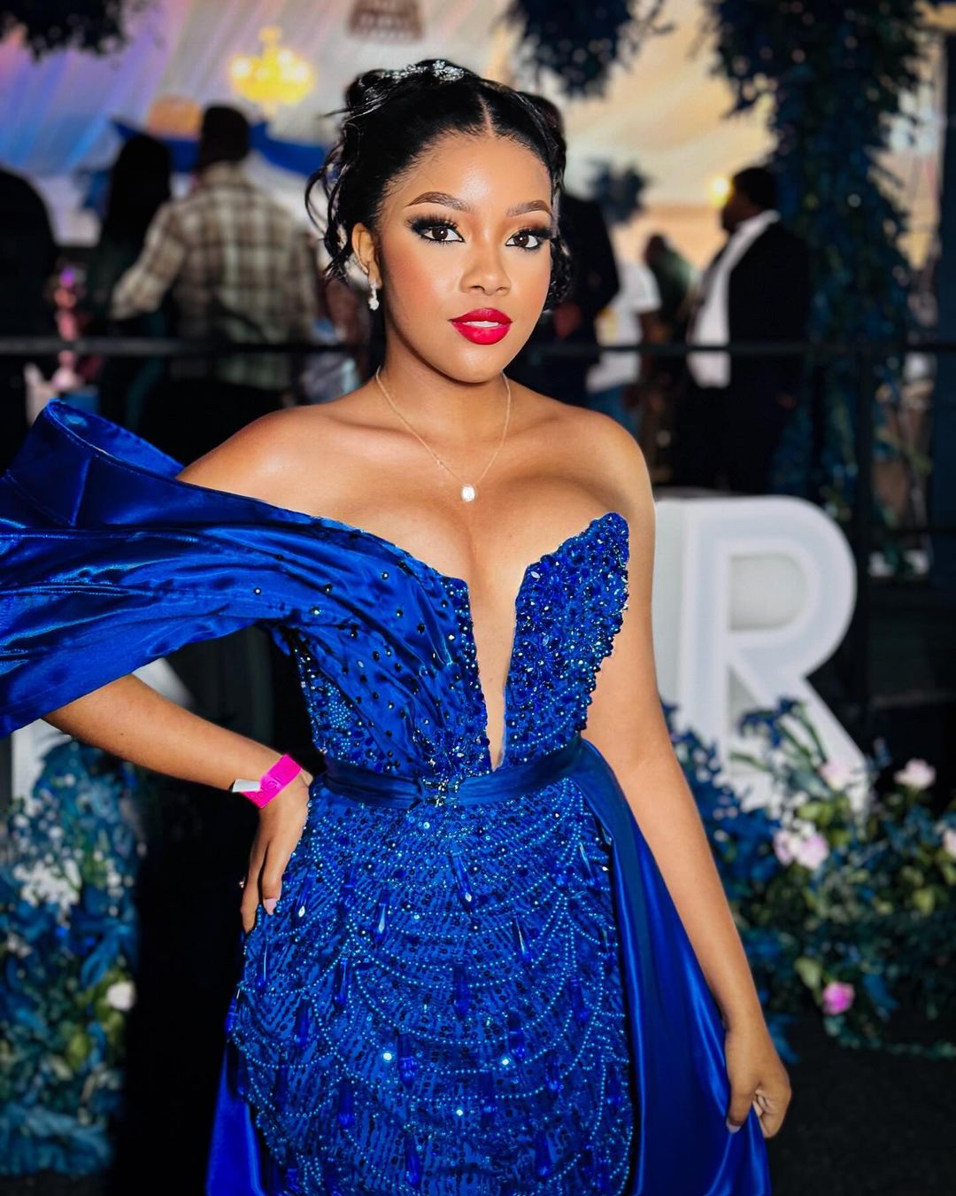 “Big Brother” star and influencer, Liyema Pantsi stunned at the July, stepping out in an effortless and delicate up-do, complete with a softly blushed complexion and blotted ruby red lip.