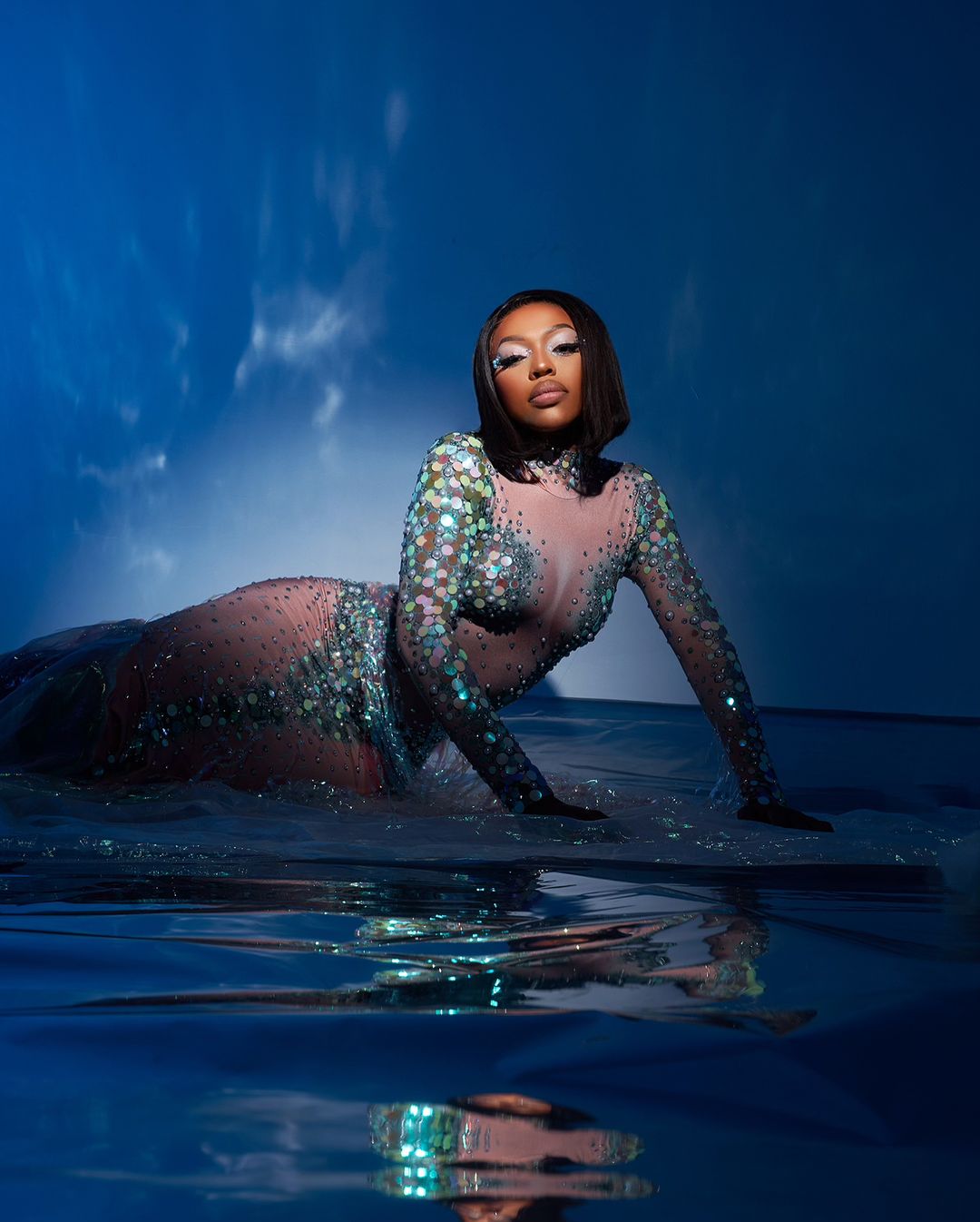 Envisioning the extravaganza’s theme through an artistic lens, digital creator Kagisi Mogala opted for drama! Blue eyeshadow and a nude lip charcoal lip? It’s safe to say, we’re obsessed with this maximalist make-up.