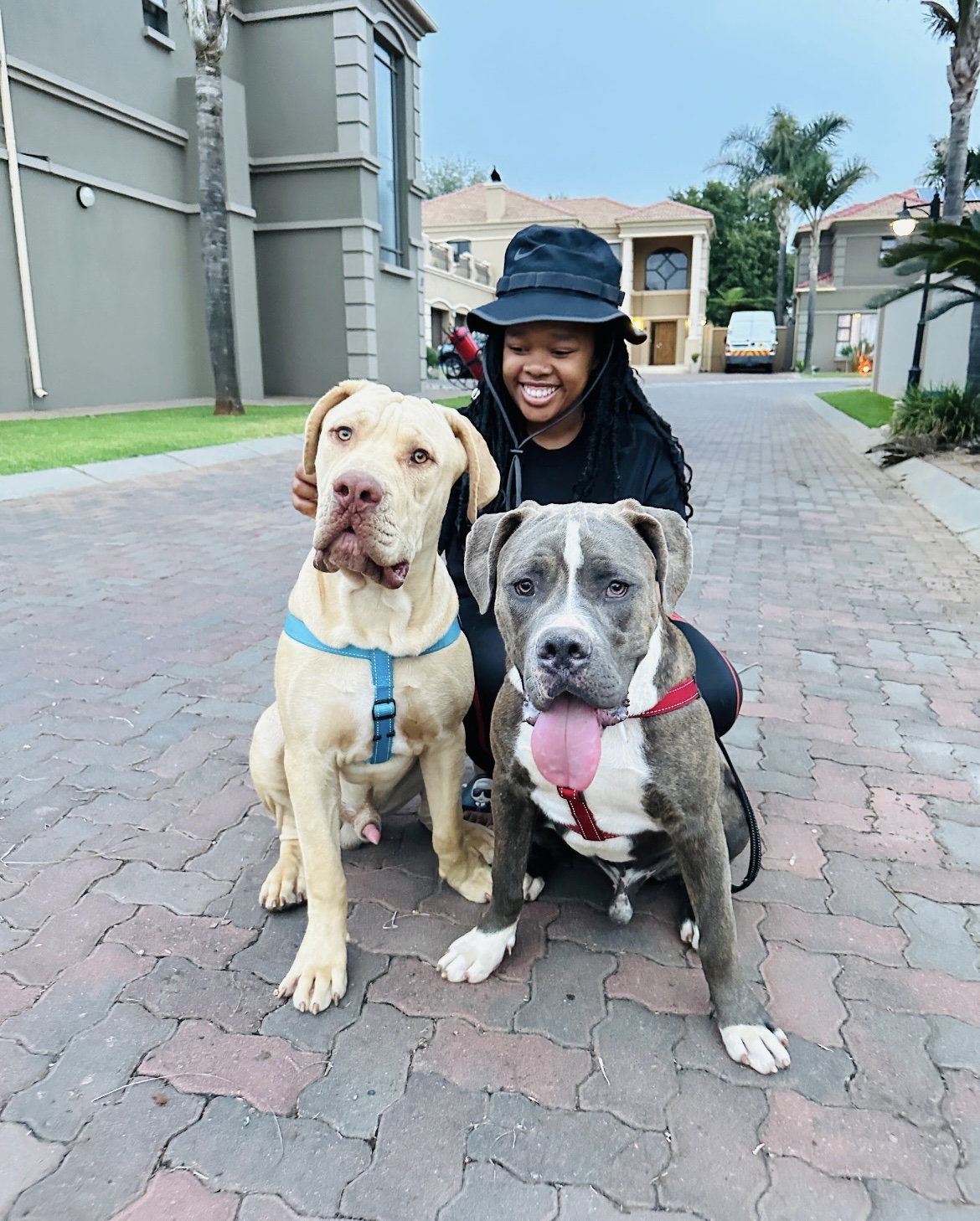 I actually have 3 dogs in total. I am an animal lover, and I love all kinds of animals. I love lions, snakes, etc, just that I can’t have them here (for now), but if I could, I’d have every kind. So dogs were a safer bet for now; I might have a cat soon and, in a year, a bird, a fish – this is not the end. Growing up, I couldn’t own pets because my parents were not too fond of pets but now I can in my own space.