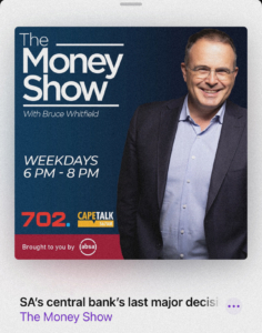 As someone who is in the Corporate Finance space professionally, it’s important to always be abreast with current affairs in the finance and business world. The ‘Money Show’ by Bruce Whitfield is currently my favourite go-to Podcast show for such weekly updates.