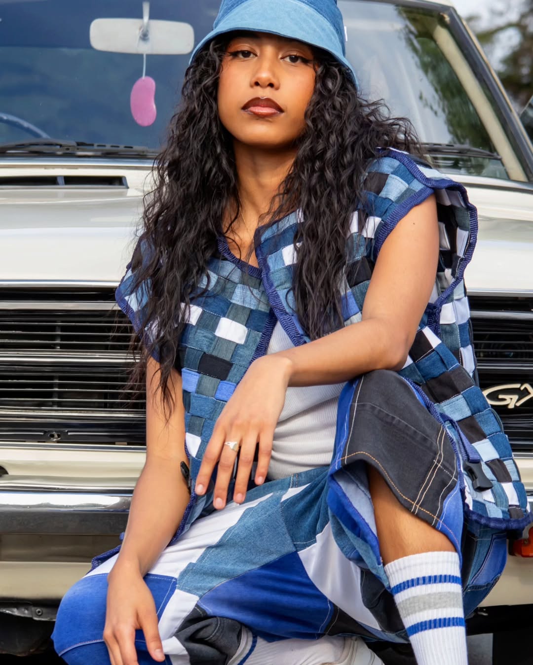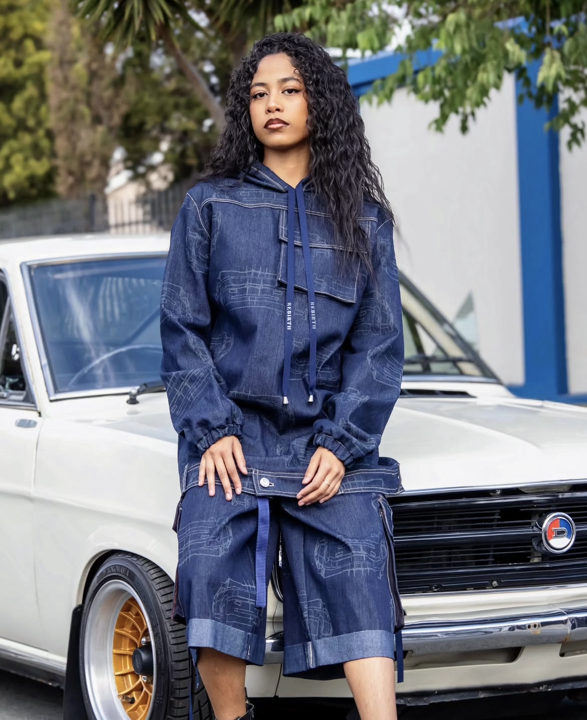 Denim is her material of choice, not by accident but by conviction. Recognising denim’s heavy environmental footprint, Davids turns to preloved jeans and discarded garments, disassembling them and re-imagining them into new forms. The result is fresh, street-ready pieces imbued with history and renewed purpose.