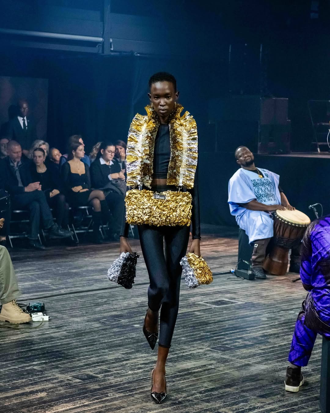 • Circular design: Transforming waste into refined, wearable art.