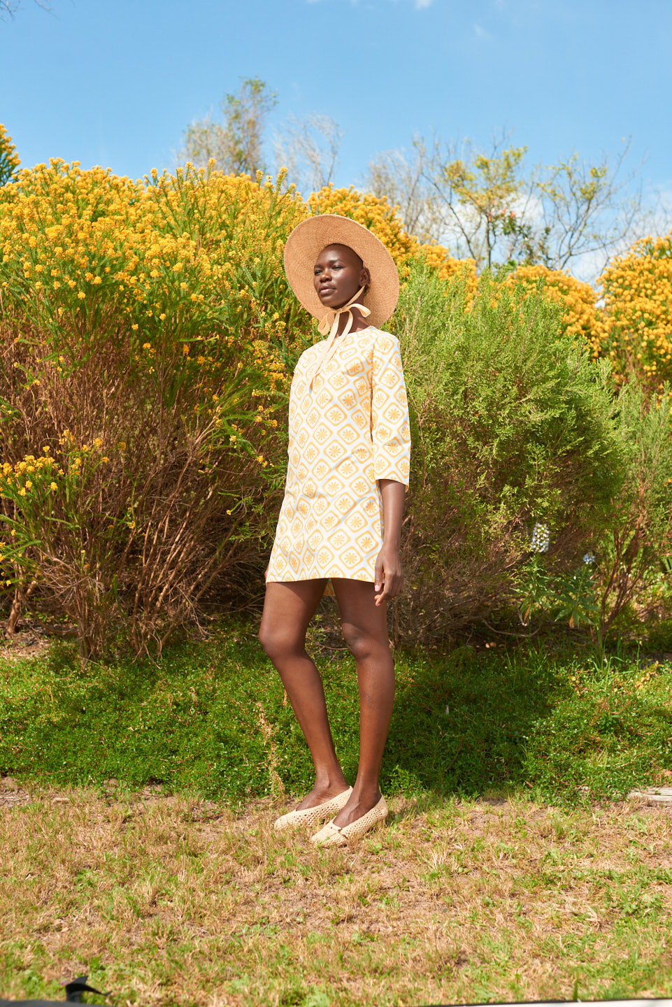 The collection introduces more accessible pieces like T-shirts and collar accessories, alongside her signature 60s-esquesilhouettes and bold, painterly prints. “I’ve always thought of clothing a kind of good luck charm,” she explains. “I want our garments to bring joy and feel like little talismans that move with you through your life.”