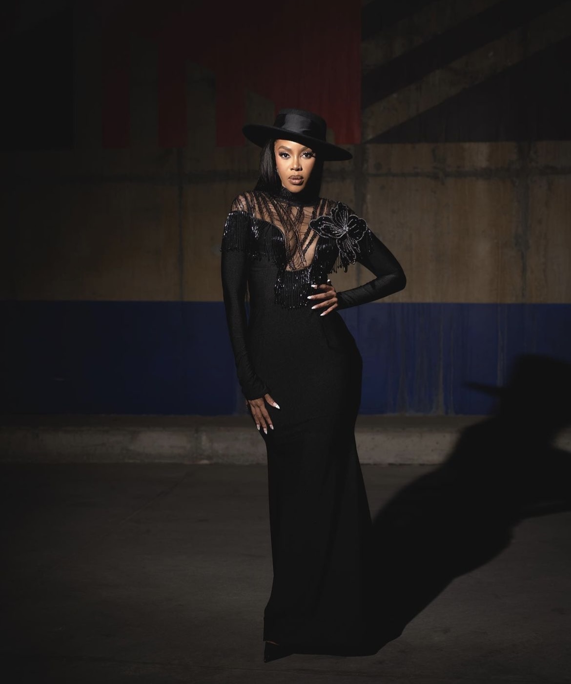 When it comes to fashion, no one understands the assignment better than multi-hyphenated media personality, Blue Mbombo. The model and entrepreneur is arguably the most consistent star in Mzansi. Sticking to SA Fashion Week’s “all black” theme, the fashion monger wore bedazzled jacket to give the outfit more character.
