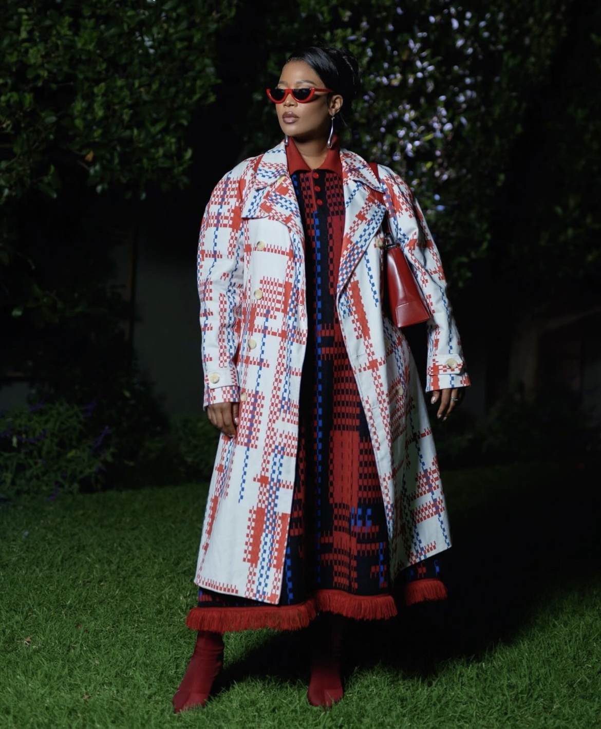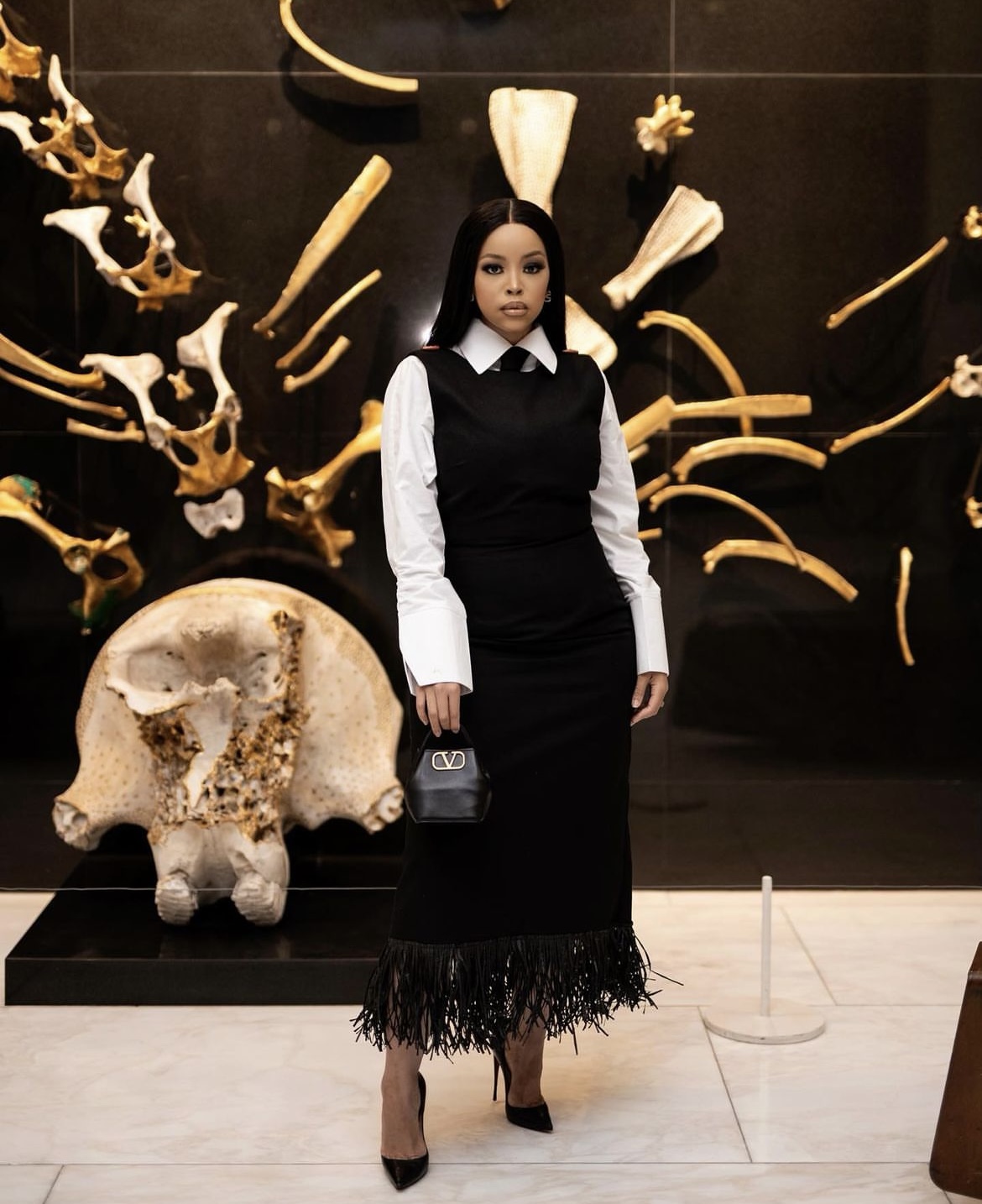 Digital entrepreneur and content producer, Lisa Madibe dazzled the red carpet in an archive Ezokhetho ensemble, styled with a magenta pink mini bag and matching calf boots at the CRUZ Vodka and SA Fashion Week launch soirée.
