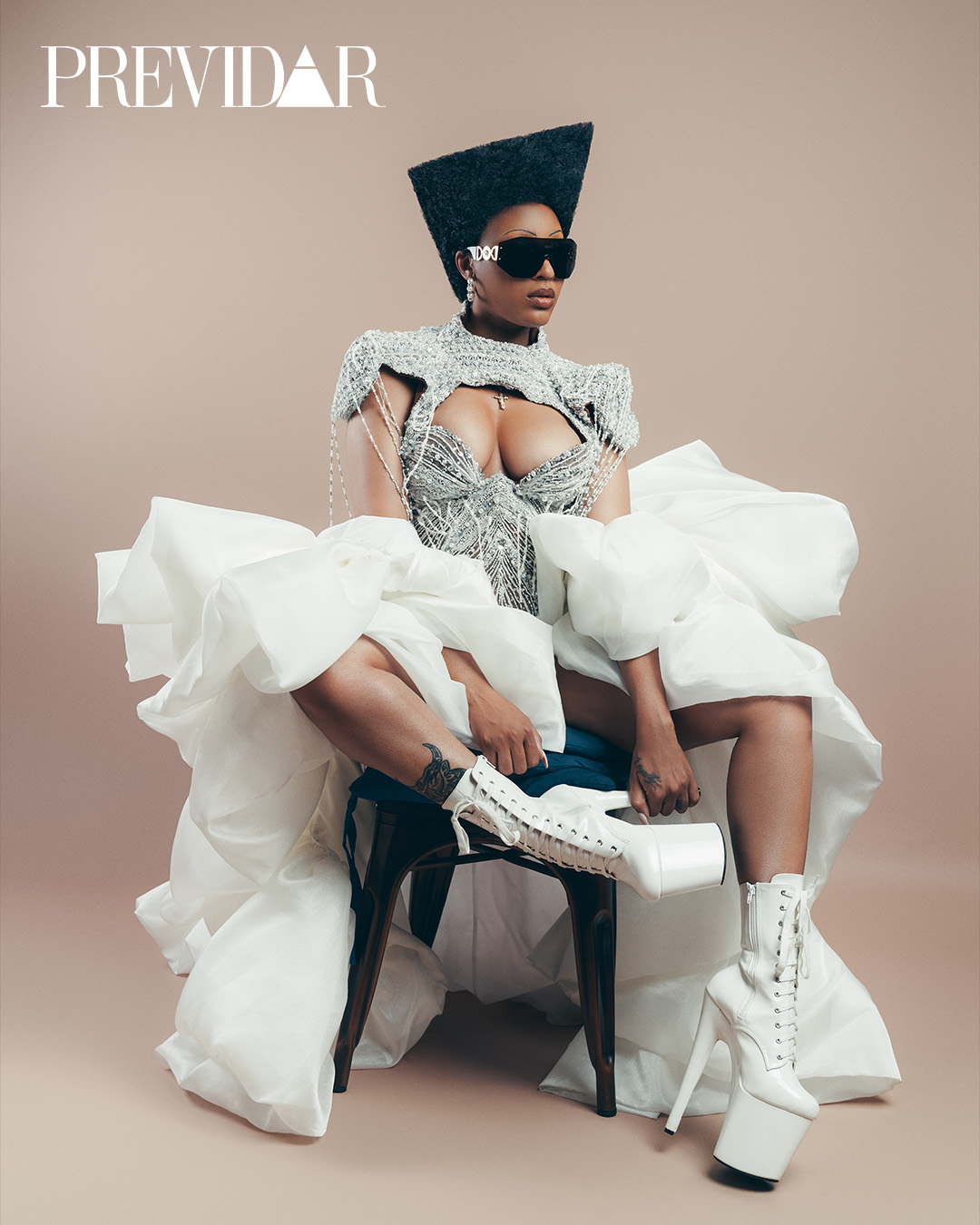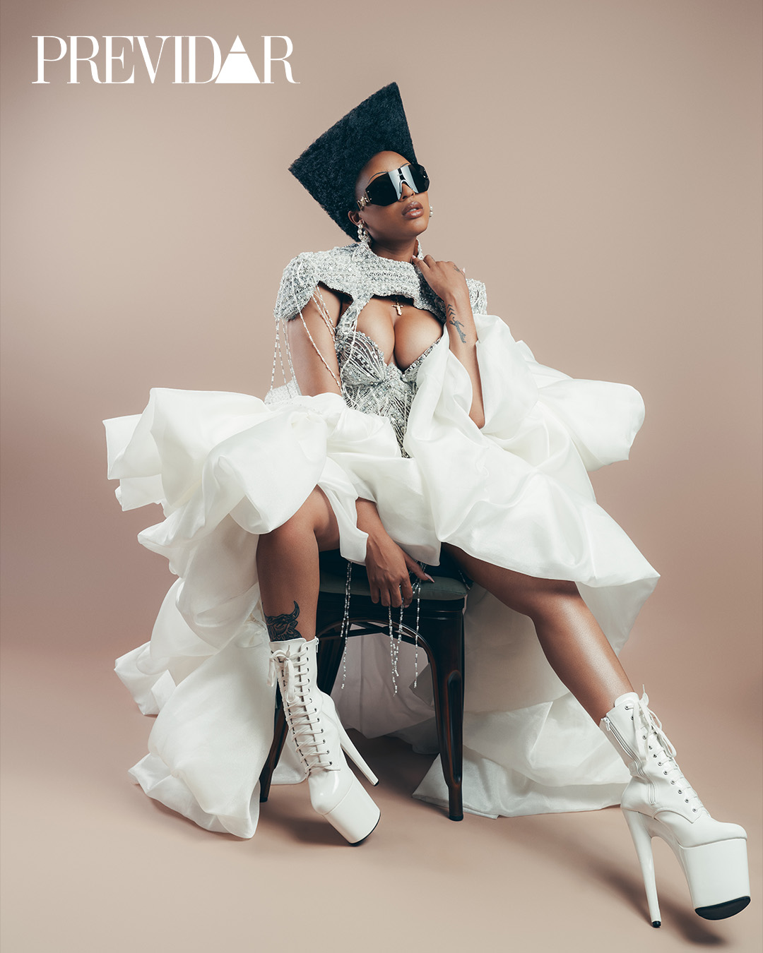 In our Issue 2 cover, we explore high fashion with classic statement pieces that showcase the various aspects of Nadia Nakai’s brand, styling led by our Fashion Editor, Thobeka Mbane, shot by photographer Kgomotso Neto, hair by Matlhogonolo Podile and make-up by Skye Barnes.