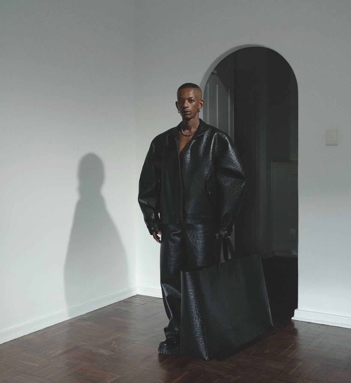 The Episode collection is a dynamic tableau of autumn-winter silhouettes, inspired by Mikhail’s hedonistic nights in 2018–19. Reflecting a bittersweet loop of indulgence and isolation, the designs echo the grit and glamour thriving in Johannesburg’s shadows . Highlighted textures, oversized leather bombers, and statement totes (including crocodile skin and jumbo shopper bags) evoke both edge and elegance.