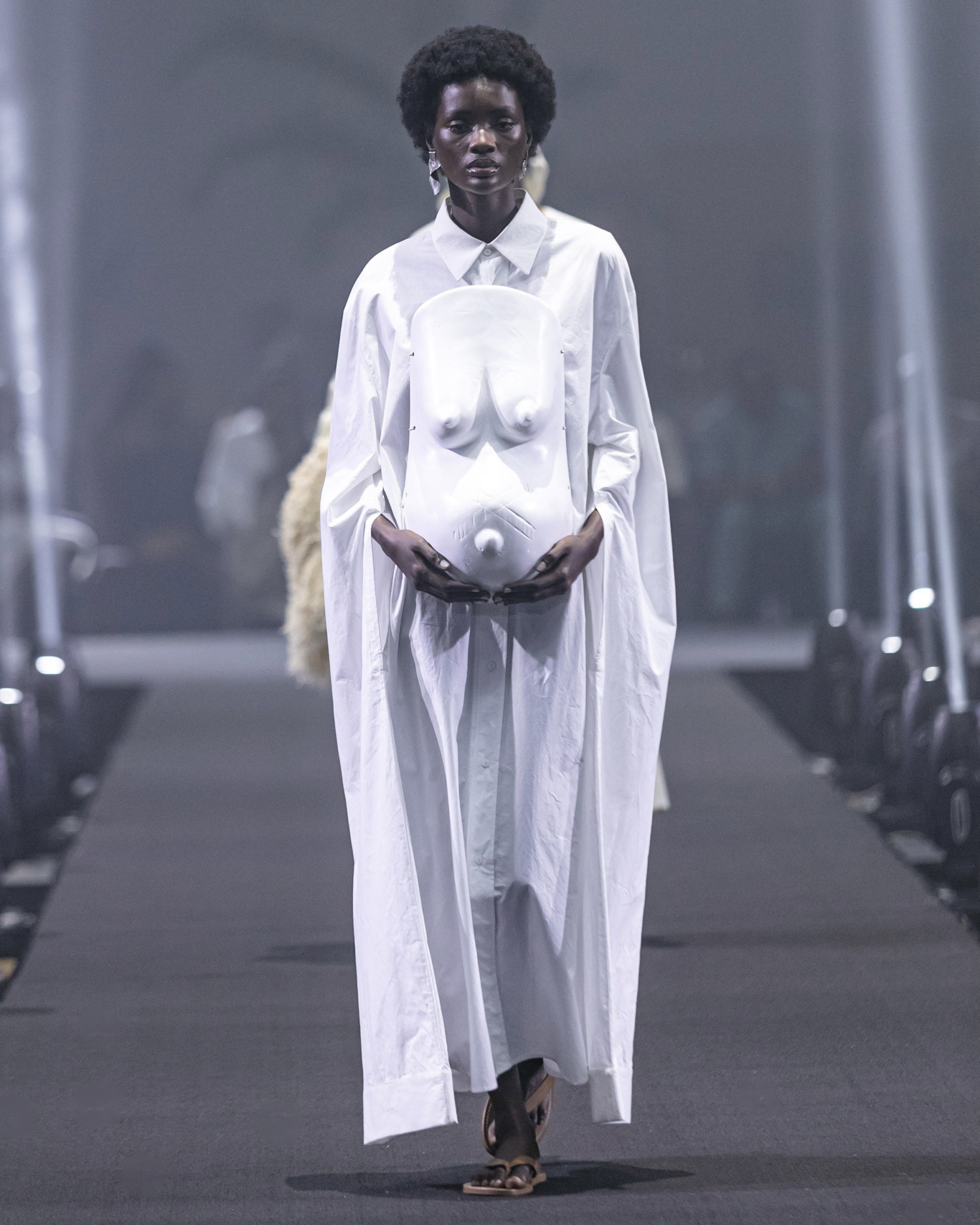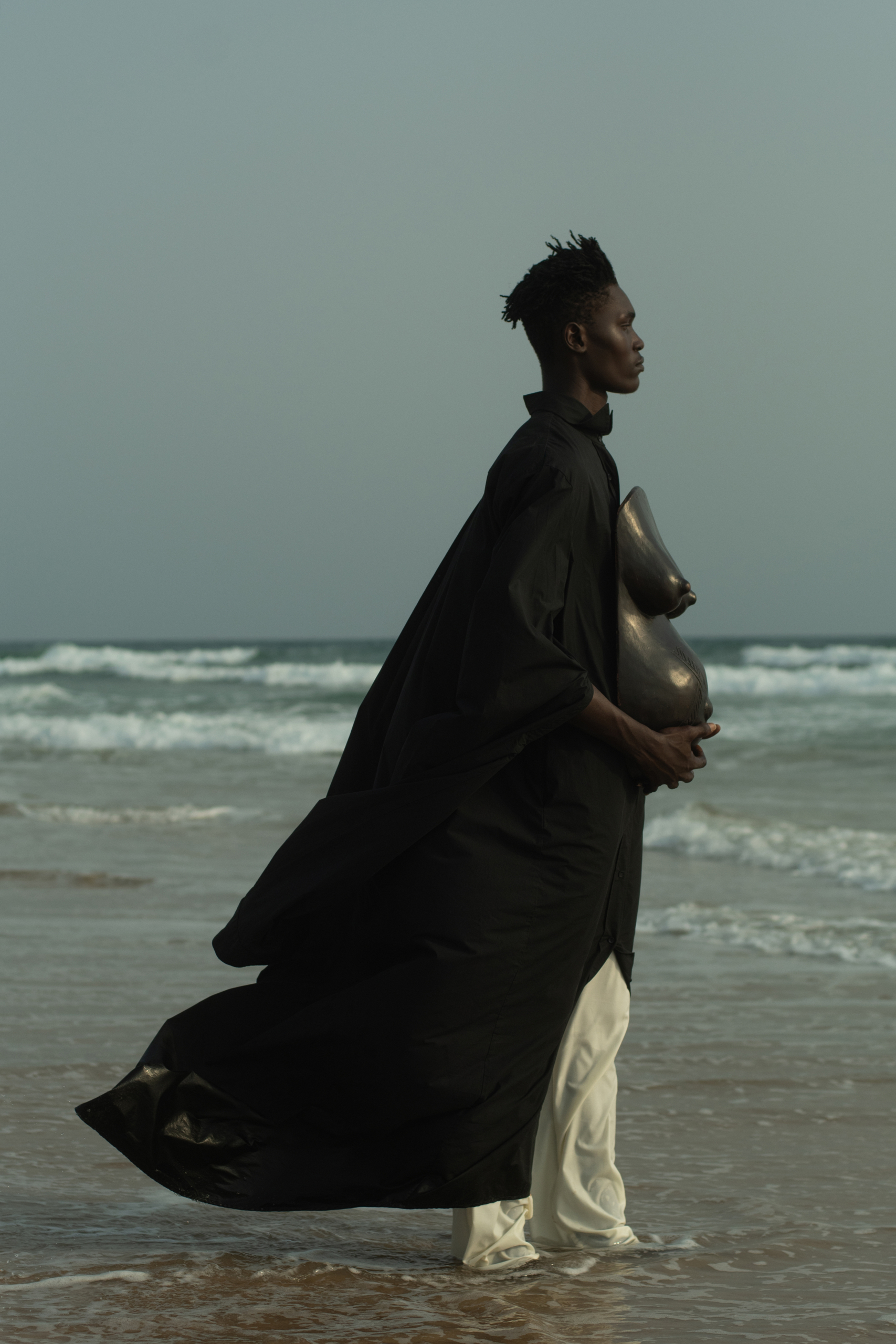 “We spoke of our mothers and how femininity as a feeling and concept has guided us personally. We used found African artifacts and hand crafted objects that speak to femininity like wooden or horn calabashes and fertility belly’s as accessories to convey that feeling,” shares Radloff.
