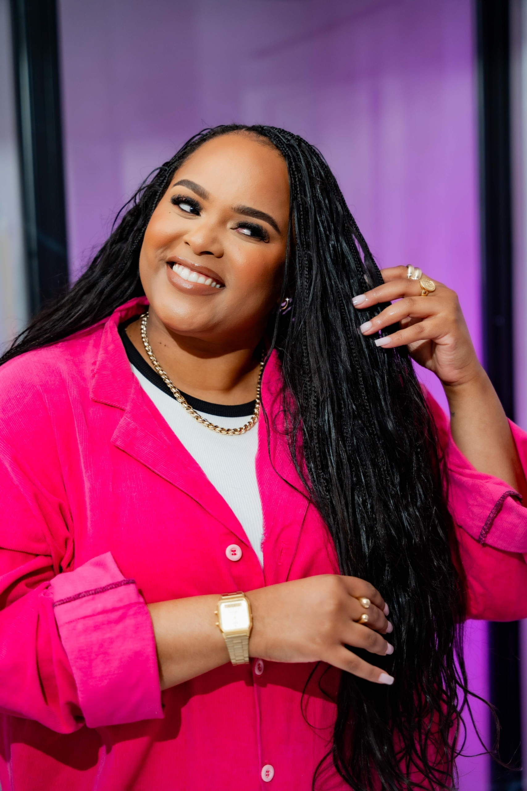This full-circle moment — working with a brand she grew up admiring, “longing to be one of the girls on the box” — is more than a job. It’s an ode to her mother, who taught her to love her hair, and a statement of belonging — representing the everyday girl next door, a content creator just like many of us.